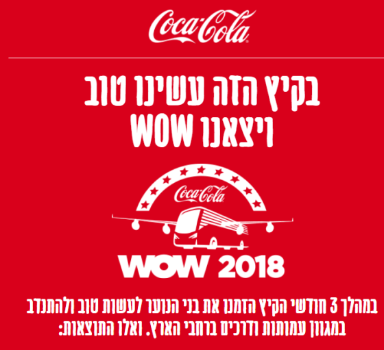 לא רחוק היום שבו חניכי תנועת הנוער "בני קוקה קולה" יצאו למסעות התנדבות ברחבי הארץ כשהם לבושים בחולצות האחידות האדומות…