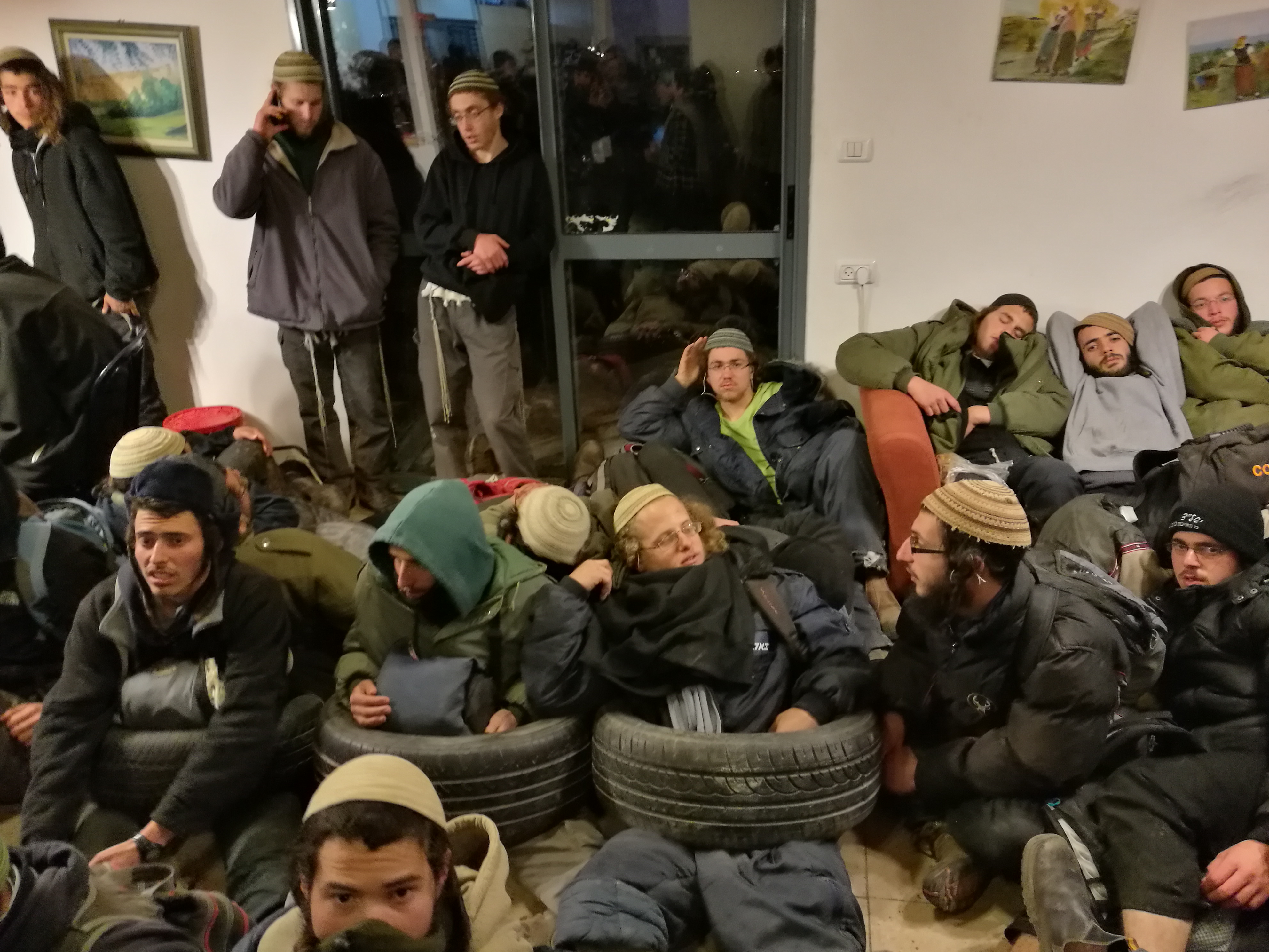 הדרמה הגדולה צפויה להתרחש בבית הכנסת, שכניסת הכוחות אליו צפויה להתחיל עם שחר. שם, תיאלץ המשטרה לגייס את מלוא עוצמתה כדי להשלים את הפינוי. קשה להבחין בניואנסים שמבדילים בין הצעירים שהגיעו למקום. ממבט ראשון נראה שכולם מתאימים להגדרה הרווחת של "נוער גבעות". אבל מבט מעמיק יותר מגלה שחלקם הם תלמידי ישיבות, "ילדים טובים" שהגיעו למקום מתוך תחושת אמונה בהולה. לא מדובר על הסטודנטים של המחאה החברתית, וגם לא על המפגינים הבוגרים יחסית שתמכו באלאור אזריה. הגיל הממוצע כאן נמוך, באזור התיכון.